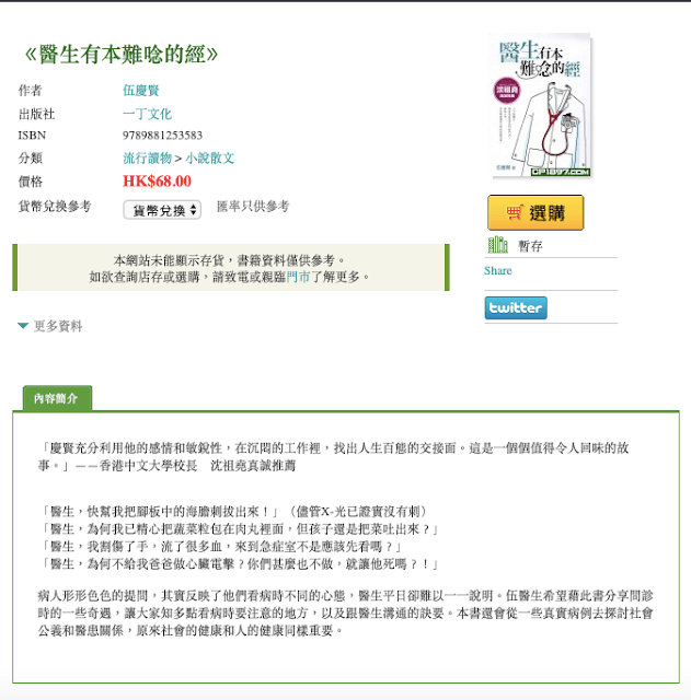 「看這些故事,讀者不單多懂一點醫療知識和急症室趣事,還可領略欣賞慶賢那急病人之急的醫者之心。」