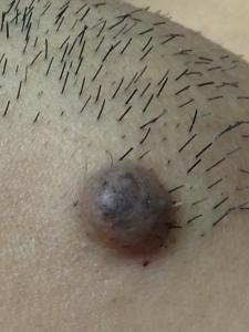 激光脫墨後,激光之處清潔齊整,無流血,底部可見所有黑色色素已經被除去。翻發機會不大。如無發炎,該處會慢慢生長回平伏狀態,疤痕不明顯。