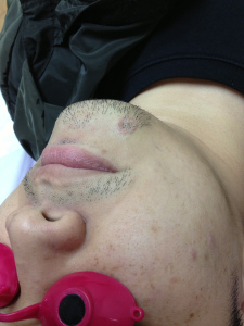 激光之前:位於下巴右邊啲墨痣,裏面有毛髮長出來。