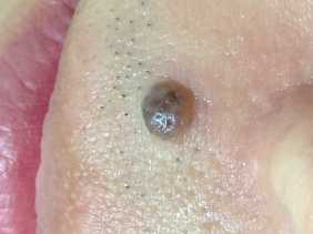 此墨痣長於上唇對上靠右位置,有毛(鬍鬚)長出。體積頗大,必須用激光去除以減少疤痕風險。