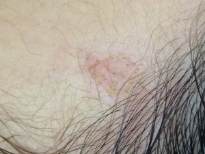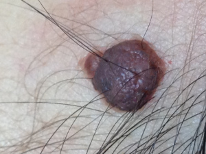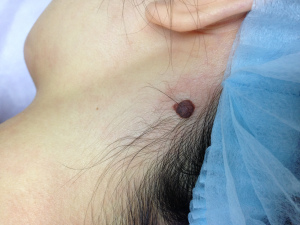 近鏡:激光脫墨前。墨痣內有毛髮長出。