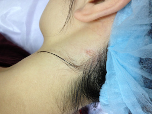 激光位置傷口清潔齊整,無流血,傷口底部可見絕大部份黑色色素已經被除去。翻發機會不大。如傷口無發炎,傷口會慢慢生長回平伏狀態,疤痕不明顯。