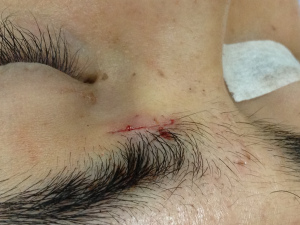 位於左邊眉毛之下的巨大墨痣,有毛髮從其中長出來。墨痣的根部位於皮層下深處,如果以激光清除,傷口預期會相當大。傷口越大,疤痕形成的機會就會越大。