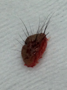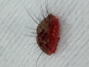比較好的做法就是把它以手術方法割除。切除之後,傷口以透明的超幼細溶線縫合.由於這種線線身極之幼細,所以針孔細到幾乎看不見(上圖所示),傷口癒合後,手術溶線會自動溶掉脫落,不需要拆線.